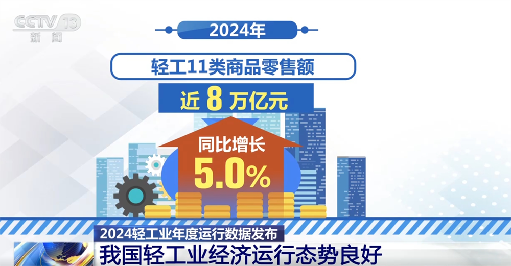 中国轻工业结合会最新数据显示,2024年,规模以上轻工企业实现停业收入23万亿元,同比增加2。0%。实现利润1。5万亿元,同比增加8。3%。过去一年,我国轻工业出产快速增加,表里贸市场规模稳步扩大,财产布局持续优化升级,无力支持工业经济稳增加。出产平稳增加。2024年,规模以上轻工业添加值同比增加5。1%,正在国度统计局统计的91种次要轻工业产物中,55种产物产量实现增加。此中,得益于消费品以旧换新政策等,家用洗衣机、电冰箱等产物产量增加较快。盈利持续改善。2024年,轻工业停业收入利润率为6。54%,比客岁提高0。38个百分点,盈利程度持续改善。此中,家电、电池、缝制机械等行业利润连结两位数增加。市场稳步扩大。跟着一系列扩内需、促消费政策发力显效,轻工业市场活力逐渐加强。2024年,轻工11类商品零售额近8万亿元,同比增加5。0%。此中,家电、音像器材等持续4个月连结高速增加态势。出口稳中有增。过去一年,轻工商品出口规模持续扩大,布局不竭优化。2024年,轻工全行业出口额同比增加3。6%,持续3个月连结回升态势。轻工21个大类行业中,13个行业出口额同比增加,外贸出口连结韧性。轻工业和我们日常糊口互相关注,粮油食物、针织纺品、家用电器等涵盖各个范畴。轻工业年度运转数据增加的背后,到底是什么样的“力量”正在鞭策?以纺织行业为例,我们的记者进行了实地走访。春节刚过,位于浙江诸暨的这个大型袜业市场曾经热闹起来,到处可见拉着推车、大包小包采购的买家。采访中记者领会到,一些使用了新材料和功能性面料的产物遭到采购商们的青睐。正在本地的这家袜业出产企业,记者看到,200余台智能袜机开脚马力,织制、定型、流水线高速运转,产物线包罗活动袜、商务棉袜、等多个品类。本地正在新设备、新材料、新工艺上不竭立异,为袜品功能、穿戴场景等多元化供给了更多选择。目前,产物已出口到全球121个国度和地域,仅2024年一年,袜业年产值就超700亿元。工业和消息化部赛迪研究院消费品工业研究所轻纺研究室副从任于娟称:“我国具有全世界最为完整的纺织工业系统,无论是出产规模仍是商业规模均居世界首位,纺织机械自从化率已跨越75%,纺织高端配备环节根本件的国产化率已跨越50%。跟着消费品以旧换新政策加力扩围,政策效应将持续,相关轻工产物零售向好将进一步向供给端传导。下一步,国度也将扩大普惠政策范畴,营制优良财产成长,对成长压力较大的行业赐与沉点搀扶。
