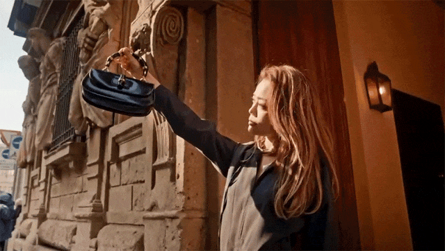 午后的阳光映照正在Gucci旗舰店的橱窗上,她驻脚顷刻,走入店内,手指轻滑过羊毛、天鹅绒取皮革,感触感染材质的流动性。