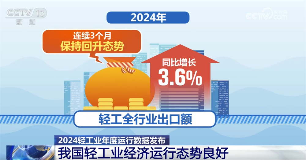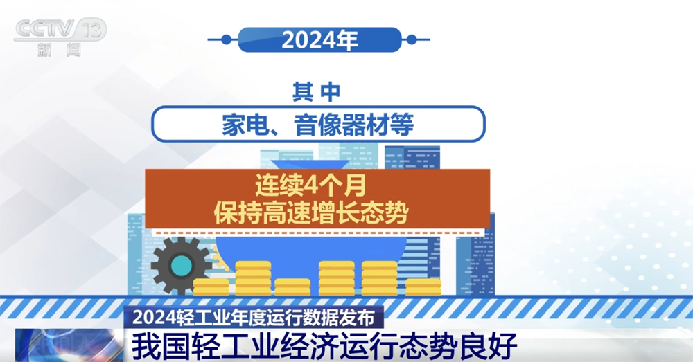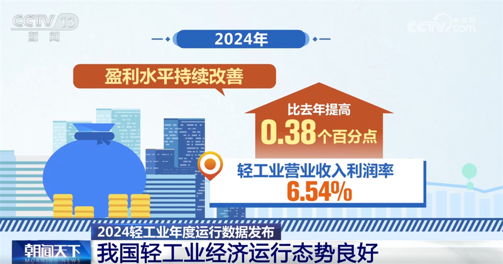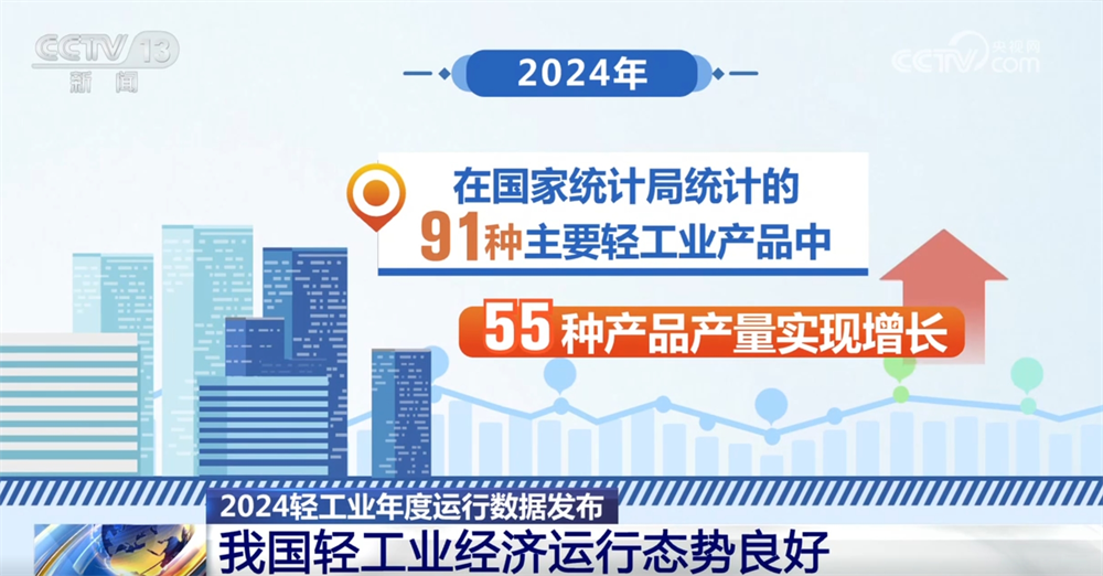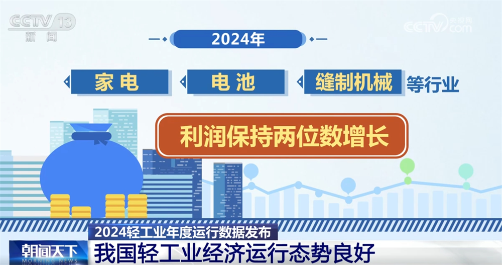 中国轻工业结合会最新数据显示,2024年,规模以上轻工企业实现停业收入23万亿元,同比增加2。0%。实现利润1。5万亿元,同比增加8。3%。过去一年,我国轻工业出产快速增加,表里贸市场规模稳步扩大,财产布局持续优化升级,无力支持工业经济稳增加。出产平稳增加。2024年,规模以上轻工业添加值同比增加5。1%,正在国度统计局统计的91种次要轻工业产物中,55种产物产量实现增加。此中,得益于消费品以旧换新政策等,家用洗衣机、电冰箱等产物产量增加较快。盈利持续改善。2024年,轻工业停业收入利润率为6。54%,比客岁提高0。38个百分点,盈利程度持续改善。此中,家电、电池、缝制机械等行业利润连结两位数增加。市场稳步扩大。跟着一系列扩内需、促消费政策发力显效,轻工业市场活力逐渐加强。2024年,轻工11类商品零售额近8万亿元,同比增加5。0%。此中,家电、音像器材等持续4个月连结高速增加态势。出口稳中有增。过去一年,轻工商品出口规模持续扩大,布局不竭优化。2024年,轻工全行业出口额同比增加3。6%,持续3个月连结回升态势。轻工21个大类行业中,13个行业出口额同比增加,外贸出口连结韧性。轻工业和我们日常糊口互相关注,粮油食物、针织纺品、家用电器等涵盖各个范畴。轻工业年度运转数据增加的背后,到底是什么样的“力量”正在鞭策?以纺织行业为例,我们的记者进行了实地走访。春节刚过,位于浙江诸暨的这个大型袜业市场曾经热闹起来,到处可见拉着推车、大包小包采购的买家。采访中记者领会到,一些使用了新材料和功能性面料的产物遭到采购商们的青睐。正在本地的这家袜业出产企业,记者看到,200余台智能袜机开脚马力,织制、定型、流水线高速运转,产物线包罗活动袜、商务棉袜、等多个品类。本地正在新设备、新材料、新工艺上不竭立异,为袜品功能、穿戴场景等多元化供给了更多选择。目前,产物已出口到全球121个国度和地域,仅2024年一年,袜业年产值就超700亿元。工业和消息化部赛迪研究院消费品工业研究所轻纺研究室副从任于娟称:“我国具有全世界最为完整的纺织工业系统,无论是出产规模仍是商业规模均居世界首位,纺织机械自从化率已跨越75%,纺织高端配备环节根本件的国产化率已跨越50%。跟着消费品以旧换新政策加力扩围,政策效应将持续,相关轻工产物零售向好将进一步向供给端传导。下一步,国度也将扩大普惠政策范畴,营制优良财产成长,对成长压力较大的行业赐与沉点搀扶。