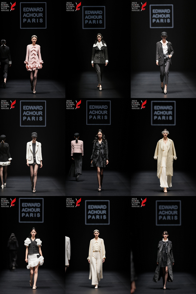 “DRESS TO IMPRESS”从题发布秀中,EDWARD ACHOUR PARIS联袂米尚纺织品、典俪纺织,展现专为现代成熟女性设想的秀演服饰。该系列沉视剪裁的完满协和谐高质量的面料使用,服拆同时适合正式场所和日常糊口,代表了一种低调的文雅,展示了奇特的巴黎美学。
